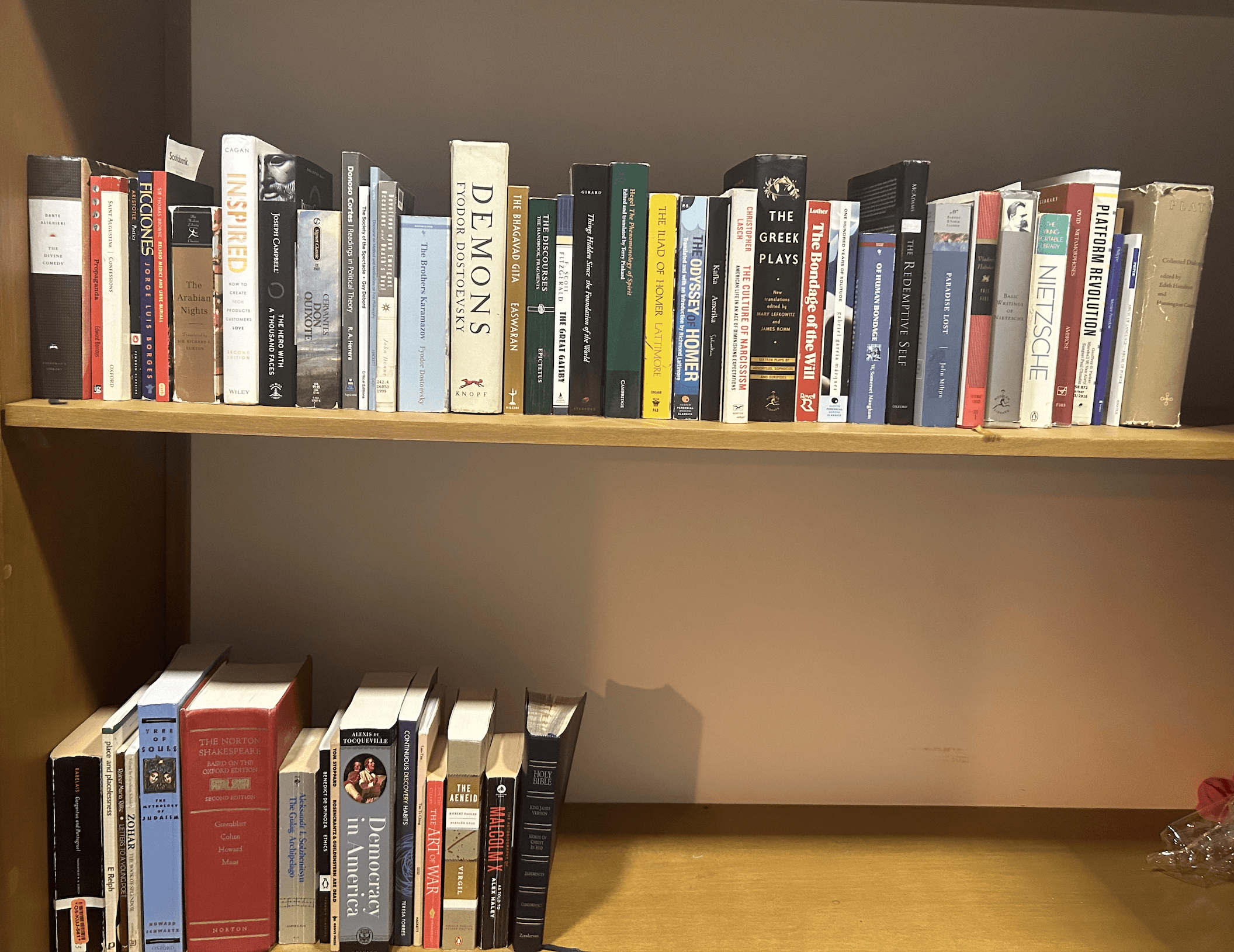 Fitting all these books, especially some of the larger ones like Shakespeare's Collected Works, Tocqueville's Democracy in America and Plato's Collected Dialogues into a travel bag was not easy at all.